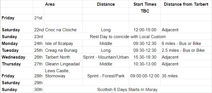 Unfortunately it has not been possible to arrange camping at the school in Tarbert.