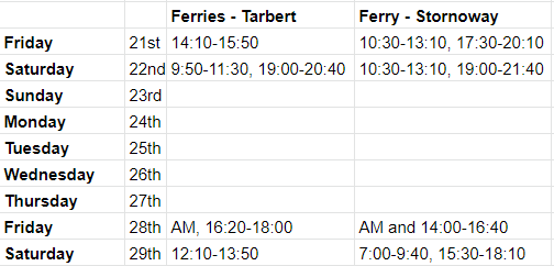 Uig, Skye to Tarbert – Timetable – Make sure to look at summer one.