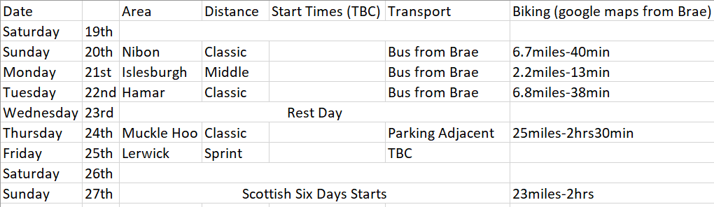 The areas we’ve lined up are amazing – Shetland is very runnable (even more so than Harris) – mostly short crop heather with occasional bare rock and boulders. No trees at all this year, just rolling hills and great sea views with unique coastlines, lots of views of islands.